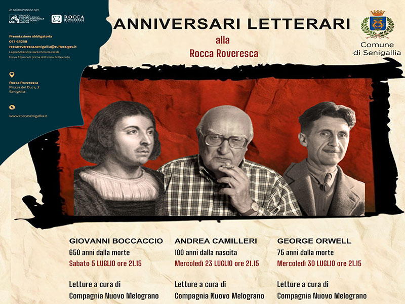 Mercoledì 23 luglio alle ore 21.15 si svolgerà il secondo appuntamento della rassegna “Anniversari letterari”, a cura della compagnia Nuovo Melograno presso la bellissima cornice della Rocca Roveresca, un ciclo di eventi che nasce per omaggiare gli anniversari di illustri scrittori che hanno fatto la storia della letteratura mondiale.