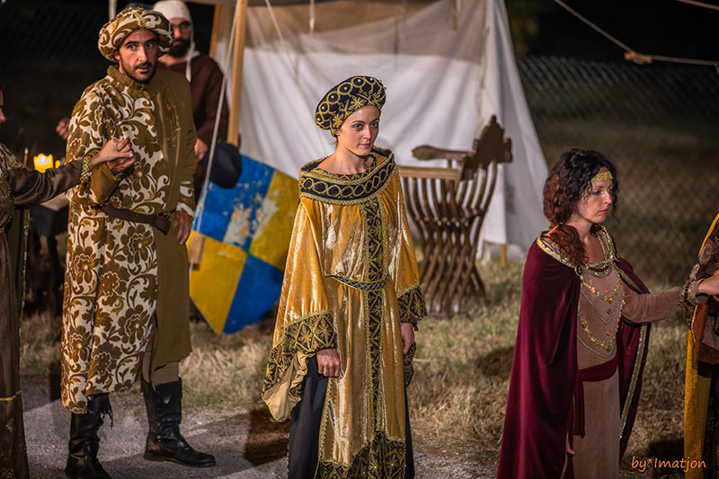 Alle ore 20.30 prenderà il via la programmazione degli spettacoli con le esibizioni di danza aerea a cura di “Planet Fitness” di Senigallia presso l’accampamento, mentre alle ore 22.00 la piazza principale del paese vedrà protagonisti i mercenari de “La Compagnia del Lupo Rosso” di Firenze in attesa del grande corteo storico delle ore 22.30. Percorrendo le vie del borgo, i figuranti in costume medievale accoglieranno l’arrivo del nuovo signore del castello, il nobile Masseo de’ Cavalcanti de Pistoria, giunto a Scapezzano nell’estate del 1355 dietro sollecitazione del cardinale Albornoz.