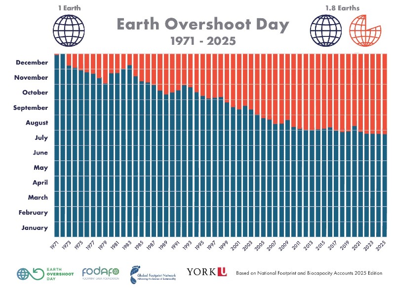 Ieri, 24 luglio, è stato l’overshoot day, il giorno in cui si stima che la Terra abbia esaurito l’intero budget annuale di risorse naturali. Questo significa che l’umanità sta utilizzando la natura a una velocità dell’80% superiore a quella di rigenerazione degli ecosistemi, compromettendo la sicurezza delle risorse a lungo termine.