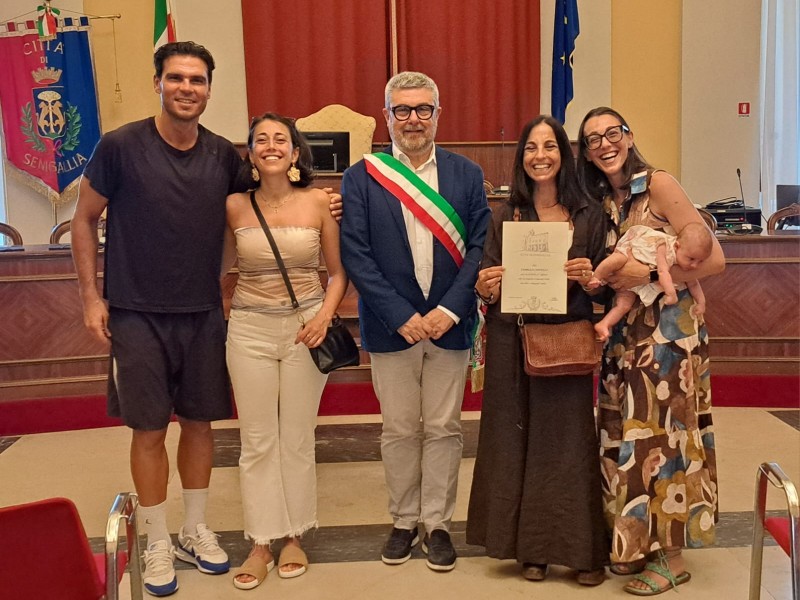 Consegna pergamene a turisti storici di Senigallia