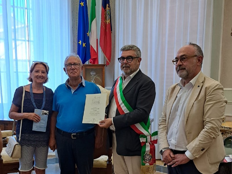 Consegna pergamene a turisti storici di Senigallia