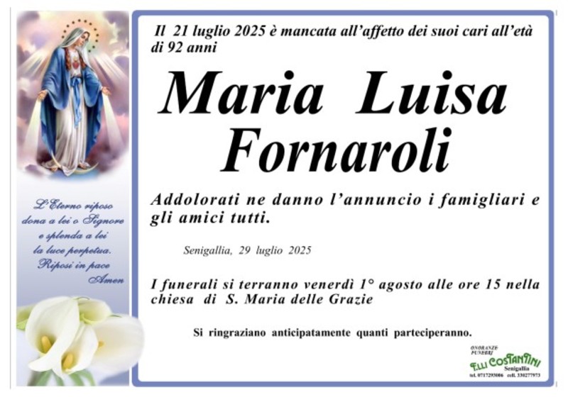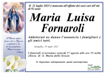 Il 21 luglio è mancata all’affetto dei suoi cari a 92 anni Maria Luisa Fornaroli.