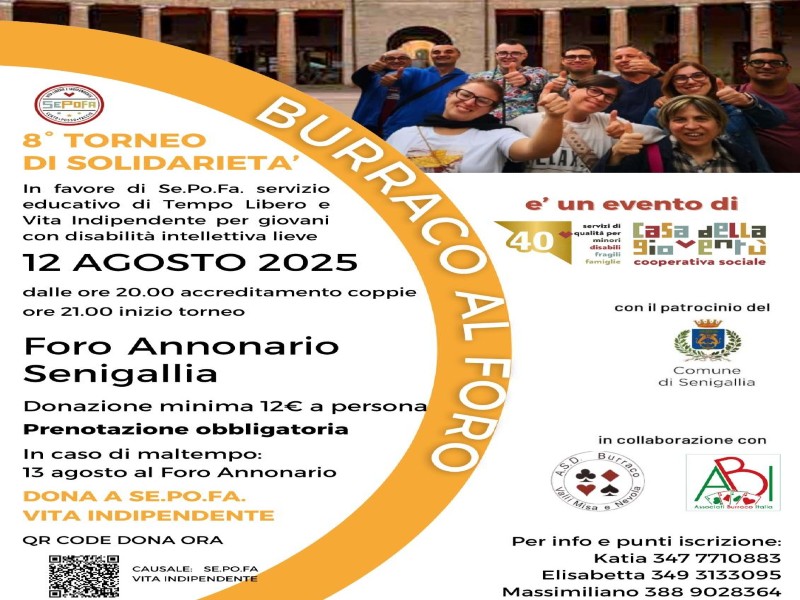 La cooperativa Casa della Gioventu’ organizza il Burraco al Foro per i giovani del Se.Po.Fa.