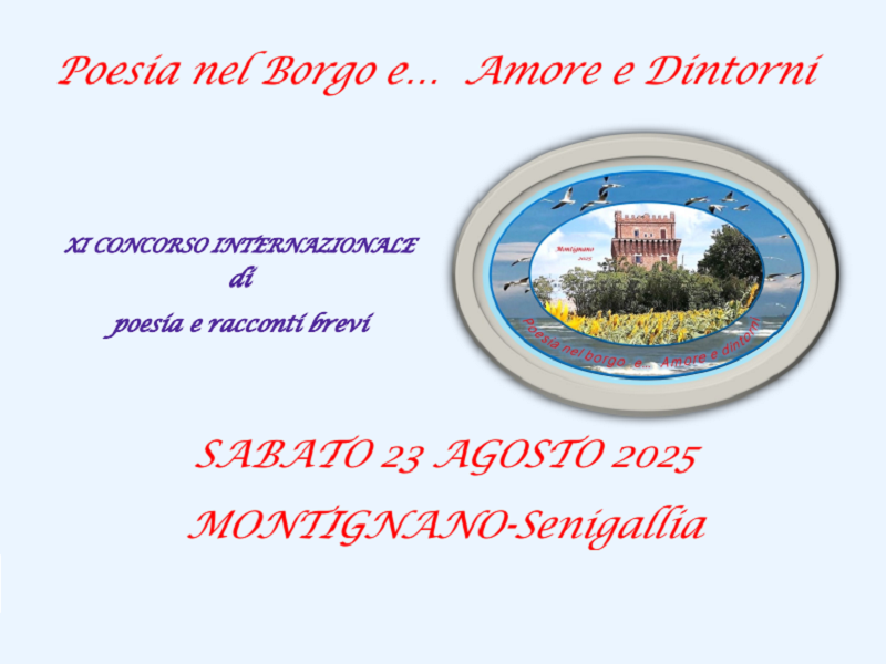 Il 23 agosto Vi aspettiamo numerosi a Montignano nella piazzetta antistante la Chiesa San Giovanni Battista in occasione della serata finale di premiazione del Concorso Internazionale “Poesia nel Borgo e… Amore e Dintorni”.