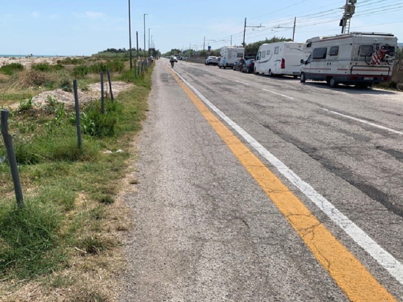 Tratto di pista ciclabile tra i condomini “Le Vele” e il previsto ingresso, lato nord, del ponte della ciclovia sul Fiume Cesano