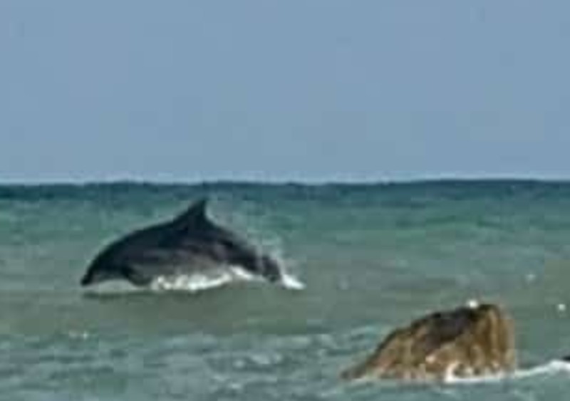 Spettacolo ammirato da molti a Senigallia nel fine settimana quello di una famiglia di delfini in acqua non lontano da riva.