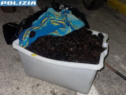 I poliziotti chiedevano quindi di aprire il portellone del portabagagli. L’uomo acconsentiva a tale richiesta, permettendo in tal modo agli operatori di scorgere la presenza, all’interno del veicolo, di una cassa in plastica di grandi dimensioni contenente 500 ricci di mare, una muta da sub, due pinne da sub, una coppia di guanti da sub, una coppia di pinne, un boccaglio, e un retino con rastrello.