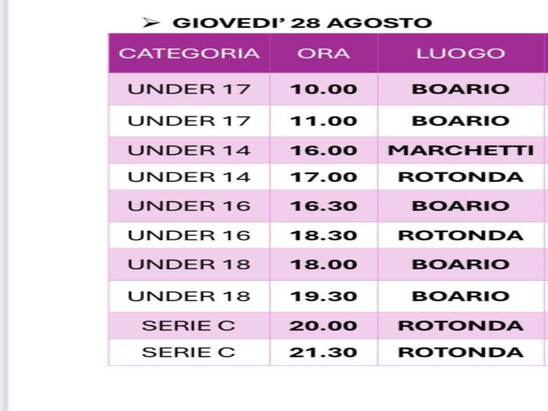 Nella foto in evidenza, le partite in programma oggi, giovedì 28 agosto.