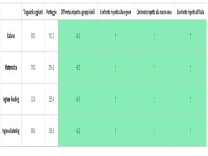 I dati ministeriali non solo confermano il trend positivo della scuola negli ultimi anni ma, addirittura, la posizionano significativamente al di sopra della media sia a livello regionale sia a livello nazionale, sia in italiano sia in matematica sia in inglese.