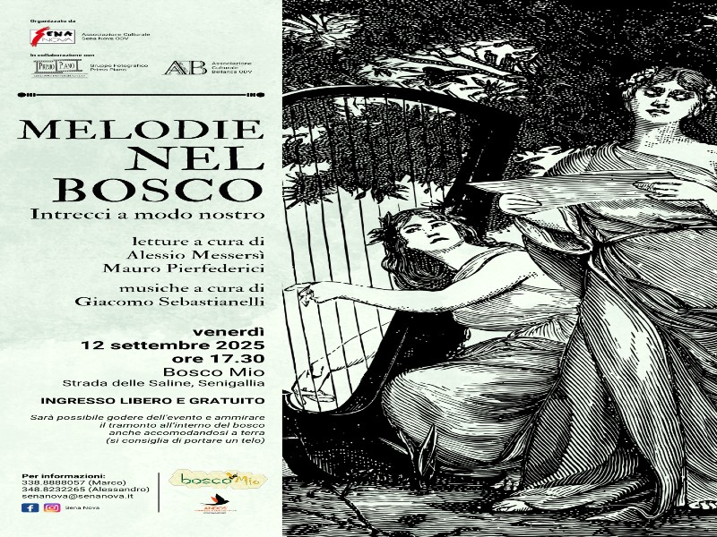 Senigallia torna a farsi palcoscenico naturale con la terza edizione di “Melodie nel Bosco – Intrecci a modo nostro”, l’iniziativa promossa dall’Associazione Culturale Sena Nova ODV in collaborazione con il Gruppo Fotografico Primo Piano e l’Associazione Culturale Bellanca ODV.