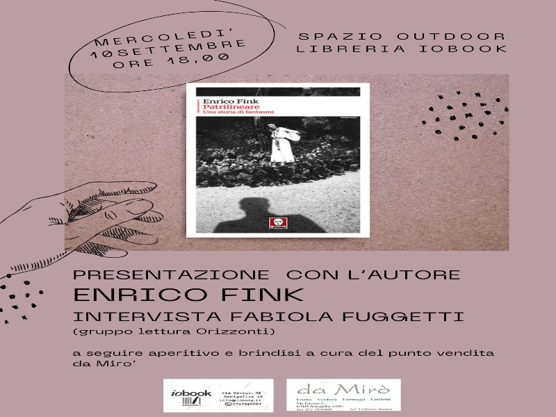 Mercoledì 10 settembre alle ore 18,00 presso la spazio outdoor della libreria iobook si svolgerà l’ultimo evento dell’estate organizzato dalla libreria: la presentazione del libro di Enrico Fink “Patrilineare. una storia di fantasmi” edizioni Lindau.