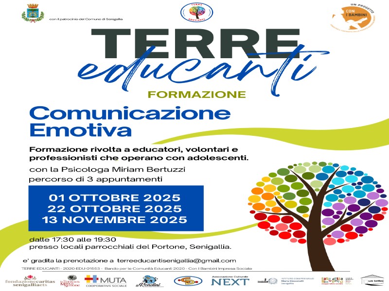 Prende il via il primo ottobre il nuovo percorso formativo dal titolo “Comunicazione emotiva”, promosso da Terre Educanti, un progetto selezionato da Con I Bambini nell’ambito del Fondo per il contrasto della povertà educativa minorile.