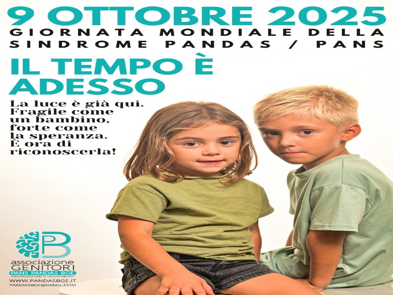 LA CANZONE SIMBOLO: IL TEMPO È ADESSO Quest’anno la Giornata Mondiale si arricchisce di un linguaggio universale: la musica. Il brano “Il tempo è adesso”, scritto da Giulia Bassi e Laura Marà e musicato da Andrea Coruzzi con la partecipazione dell’Orchestra Dedicata, nasce dal cuore delle famiglie e dall’impegno dell’Associazione Genitori PANS PANDAS BGE, sarà disponibile su tutte le principali piattaforme musicali digitali, oltre che diffuso attraverso i canali ufficiali dell’Associazione. Un inno che accompagna tutti coloro che ogni giorno affrontano questa malattia, trasformando la sofferenza in musica e coraggio. Una voce che sale dalle famiglie “Il tempo è adesso” è il motto scelto per questa edizione: un invito a non rimandare più. La luce verde che illuminerà l’Italia il 9 ottobre è fragile come un bambino, ma forte come la speranza: è il segno che una comunità intera chiede il riconoscimento di queste sindromi e l’accesso a cure adeguate per tutti.