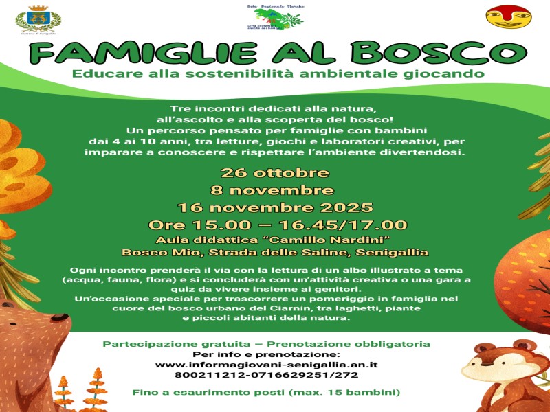 Educare alla sostenibilità ambientale giocando è l’iniziativa promossa dall’informagiovani del Comune di Senigallia all’interno della Rete “Città sostenibili amiche dei bambini e degli adolescenti” dal titolo: FAMIGLIE AL BOSCO