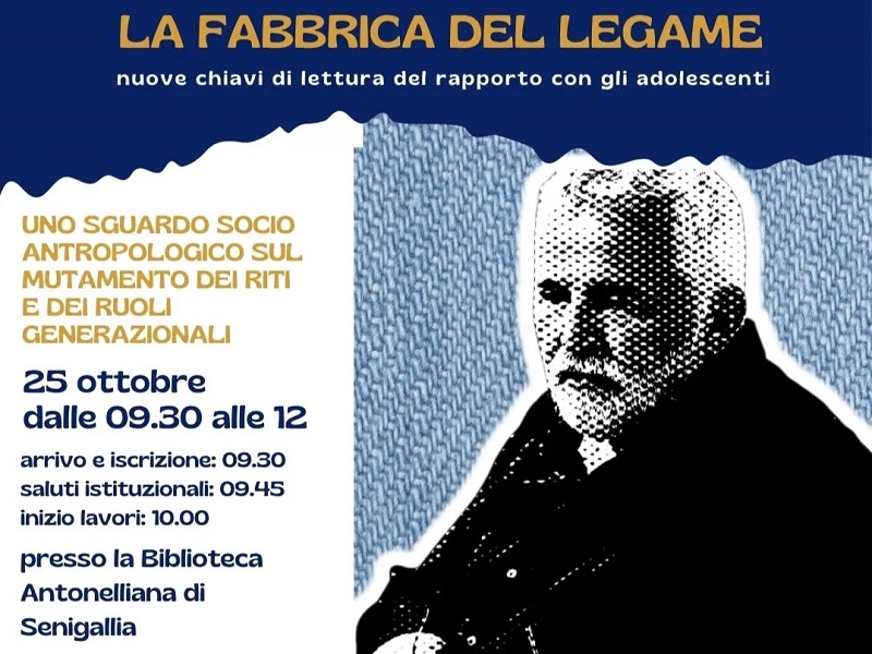 Un evento da non perdere, sabato 25 ottobre 2025, dalle 9:30 alle 12:00, presso la Biblioteca Antonelliana di Senigallia. L’incontro gratuito, dal titolo “La Fabbrica del Legame: nuove chiavi di lettura del rapporto con gli adolescenti”, si rivolge a genitori, educatori e insegnanti interessati ad approfondire il tema attraverso uno sguardo socio-antropologico sul mutamento dei riti e dei ruoli generazionali.