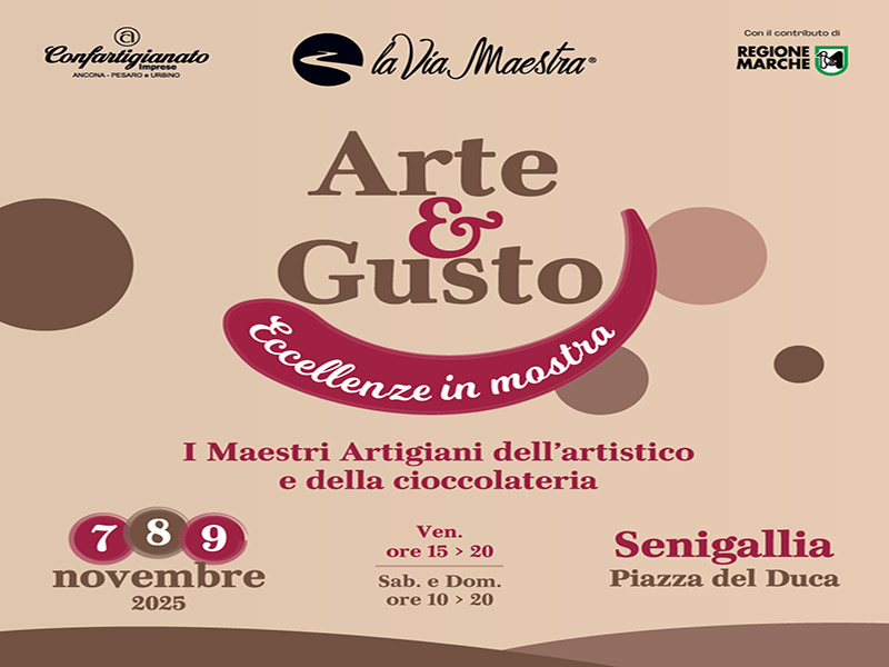 Dal 7 al 9 novembre, la suggestiva Piazza del Duca di Senigallia ospiterà “Arte & Gusto – Eccellenze in mostra”, un evento che celebra la creatività, la qualità e la passione di artigiani e cioccolatieri del territorio.