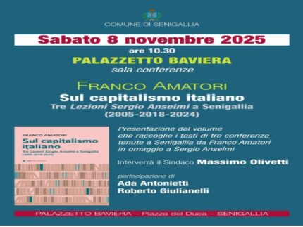 Sabato 8 novembre, alle ore 10.30 nella sala conferenze del Palazzetto Baviera di Senigallia, verrà presentato il libro Sul capitalismo italiano, nel quale l’autore Franco Amatori ha riunito i testi di tre sue Lezioni svolte a Senigallia per rendere omaggio a Sergio Anselmi.