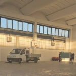 Operai al lavoro alla palestra di via Mantegna alla Cesanella