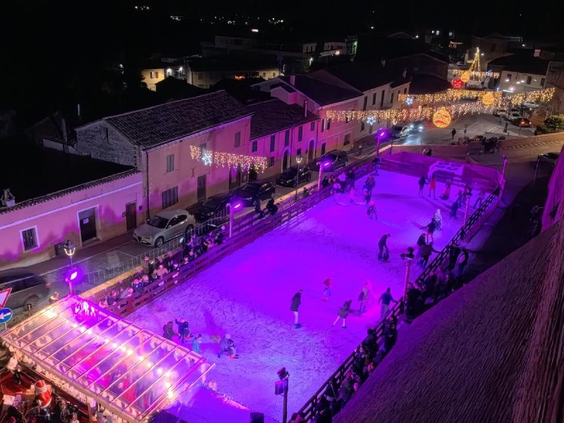 Imperdibile la pista di pattinaggio sul ghiaccio in Costa Gioco del Pallone, il suggestivo Presepe Artistico-Meccanico della Contrada Santa Apollonia e la fantastica Casa di Babbo Natale.