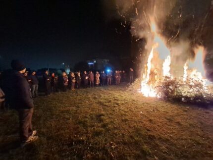 Come sempre, è stato acceso nel prato retrostante la Chiesa di San Pio X il “focarone” per ricordare i fuochi che un tempo costellavano le colline marchigiane al fine di “illuminare” il volo degli angeli e, mentre il fuoco veniva mantenuto con una fiamma vivace, soci e simpatizzanti hanno dato voce al canto “Madonna nera”, preceduto dalle parole del parroco Don Paolo Gasperini.
