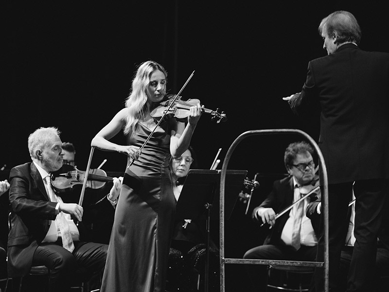 Un’emozione che non sfuma nel finale, dove, richiamata più volte in scena da un pubblico entusiasta, la violinista ha regalato un assolo-incursione nel moderno. Un’uscita che ha raccontato una Tifu non solo interprete ma anche autrice di un linguaggio sonoro.