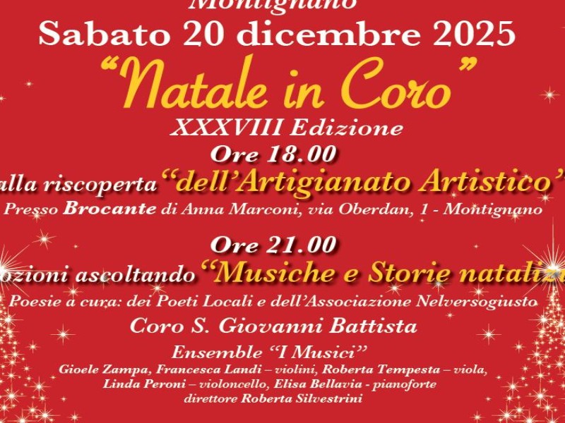 L’Associazione Musica Antica e Contemporanea, il Coro S. Giovanni Battista, in collaborazione con il Comune di Senigallia, la Parrocchia S. Giovanni Battista, l’Associazione Promotrice Montignanese, l’Associazione L’Estetica dell’Effimero, i Poeti Locali e i Poeti dell’Ass. Nelversogiusto, la Biblioteca Luca Orciari, presentano la 38° edizione di “…Natale in Coro”.