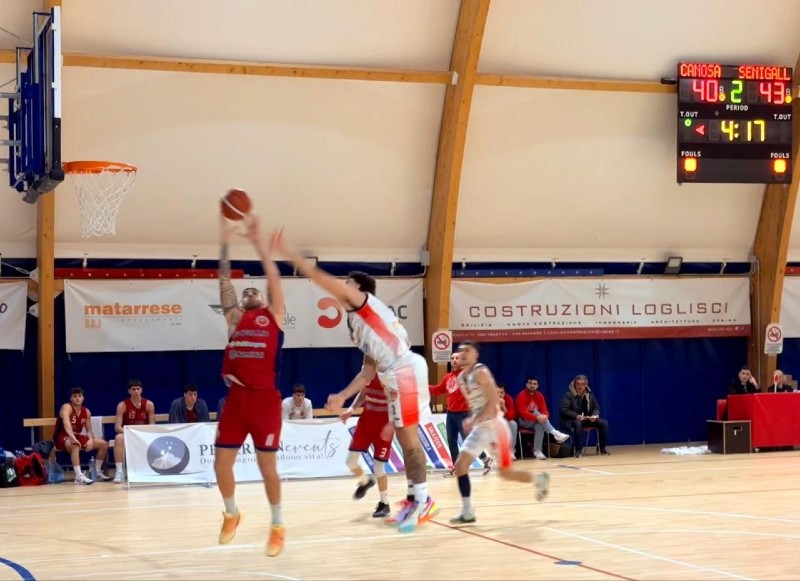 Sembra la volta buona nel finale, perché a 3’ dalla fine conduce 75-87, ma Canosa pareggia di nuovo, a 89, complice qualche scelta rivedibile dei senigalliesi.