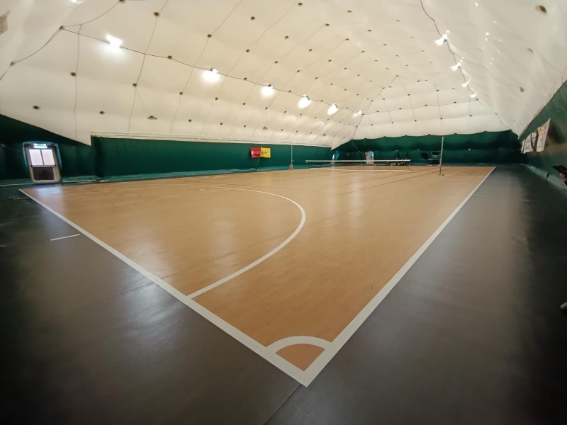 È stata realizzata una nuova superficie sportiva indoor in pvc multistrato per una estensione di 1000 mq, in sostituzione del precedente fondo fortemente usurato.
