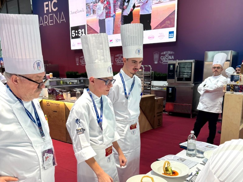 Nel giorno in cui l’Italia festeggia i suoi ori olimpici, anche l’IIS Panzini di Senigallia celebra con orgoglio un oro speciale: il primo posto assoluto ai Campionati della Cucina Italiana – Categoria Contest Ragazzi Speciali, organizzati dalla Federazione Italiana Cuochi e svoltisi domenica 15 febbraio a Rimini.