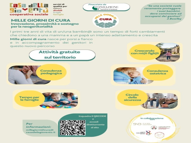 “Se una società vuole veramente proteggere i suoi bambini, deve cominciare ad occuparsi dei genitori”. Citando il celebre psicologo John Bowlby, prende ufficialmente il via “Mille giorni di cura”, un progetto al supporto della genitorialità e della crescita dei più piccoli attraverso un approccio integrato tra digitale e presenza sul territorio.