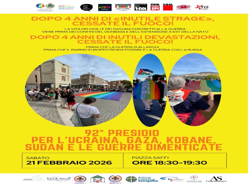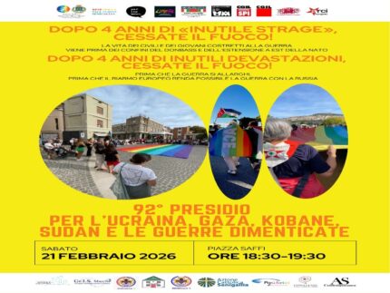 Il 92° presidio per la Pace è dedicato in particolare all’Ucraina ed anche a Gaza e Cisgiordania, a Kobane, al Sudan, a Cuba e a tutte le guerre dimenticate.
