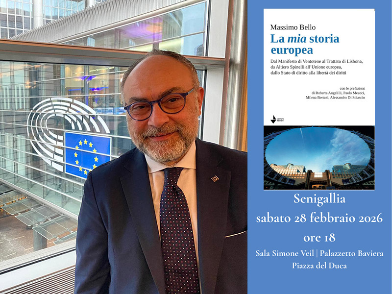 Sabato 28 febbraio 2026, alle ore 18 nell’affascinante cornice della Sala Simone Veil, al Palazzetto Baviera a Senigallia, si terrà la presentazione del libro “La mia storia europea” di Massimo Bello.