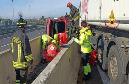 I Vigili del fuoco sono intervenuti poco dopo le ore 14.30 del 24 febbraio lungo la corsia nord dell’autostrada A14, nei pressi del casello di Montemarciano, per un incidente stradale.