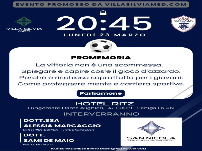 Villa Silvia Med, in collaborazione con F.C. Vigor Senigallia, di cui la clinica è sponsor ufficiale, promuove un evento di sensibilizzazione dedicato a un tema sempre più rilevante nel mondo dello sport giovanile: la ludopatia.
