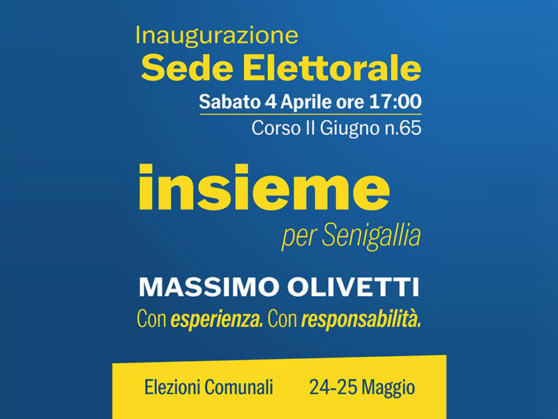 Sarà inaugurata sabato 4 aprile 2026 alle ore 17:00 la nuova sede elettorale – in corso II Giugno n. 65 – del candidato sindaco, Massimo Olivetti impegnato nella corsa per il suo secondo mandato.