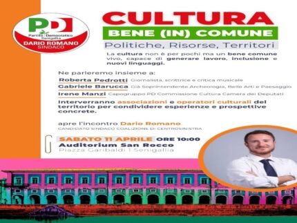 La cultura come motore di sviluppo, inclusione e innovazione: è questo il cuore dell’incontro pubblico “Cultura bene (in) comune. Politiche, Risorse, Territori”, promosso dal Partito Democratico di Senigallia, in programma sabato 11 aprile, alle ore 10.00, presso l’Auditorium San Rocco, in Piazza Garibaldi.