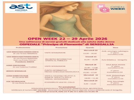Mercoledì 29 aprile l’Andos Senigallia organizza un punto informativo presso la Senologia Radiologica dalle ore 15 alle ore 17 (1° piano monoblocco D2).