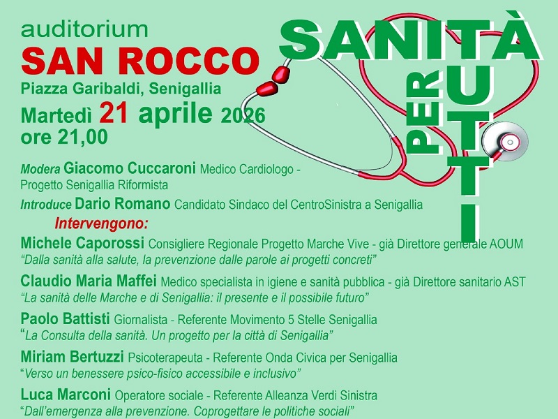 In questo contesto, un impegno concreto riguarda Senigallia: a seguito della vittoria elettorale del centrosinistra, verrà istituita una Consulta della sanità, uno strumento di partecipazione attiva che coinvolgerà lavoratori del settore sanitario, cittadini e tutte le associazioni impegnate nella tutela dei malati e delle persone con disabilità. Questo sarà il tema dell’intervento di Paolo Battisti.