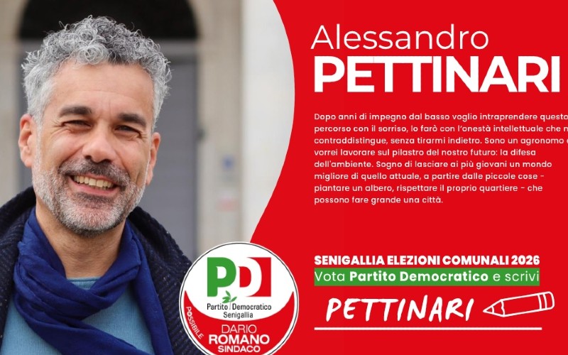 Alessandro Pettinari, candidato nella lista del Partito Democratico alle elezioni amministrative di Senigallia del 24 e 25 maggio 2026