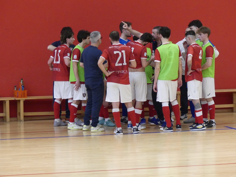 Applausi, tanti, poi si comincia. Non passa neanche un minuto che Pianelli si scontra con Zacheo, scontro che porterà strascichi. Ma questo non impedisce al Corinaldo di iniziare subito in quinta e di sbloccarla già dopo due minuti: punizione a favore dei padroni di casa, Campolucci non sbaglia, 1-0. Micci vicino al raddoppio, ma non è ancora il suo momento, ma quello di Pianelli che da uno sviluppo su rimessa laterale firma il raddoppio, palo, gol 2-0. Poi se ne va in panchina per non rientrare più. Il Recanati batte un colpo con l’asse Zacheo-Taffi, ma è di nuovo il Corinaldo a segnare: Pettinari, lanciato da Jacchetti, tutto solo davanti alla porta non sbaglia, 3-0. Al 13’ accorcia Zacheo, dopo due minuti è la volta di Maione, 3-2. Il Recanati cresce, il Corinaldo cala, un po’ stanco. Ma allo scadere del primo tempo, ecco il 4-2 (su autogol) che ci voleva. Al rientro il Corinaldo batte di nuovo un colpo con il tandem Campolucci-Mancini, 5-2. Gonzalez accorcia un minuto dopo, ma i padroni di casa non accusano, creando diverse occasioni gol. All’11’ i recanatesi si giocano la carta del quinto di movimento, ma è Micci a mettere il punto alla partita, segnando il 6-3 finale. Sabato 5 aprile, nell’ultima giornata di campionato, il Corinaldo è atteso a Teramo come nuova capolista: nei piedi dei corinaldesi il match point promozione.