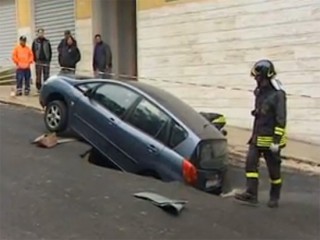 L'auto era parcheggiata quando all'improvviso l'asfalto sotto le ruote posteriori ha ceduto