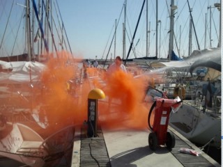 Per l’occasione è stato simulato un incendio a bordo di una unità da diporto ormeggiata ad uno dei pontili