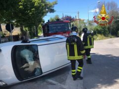 Incidente stradale a San Silvestro di Senigallia, auto si ribalta