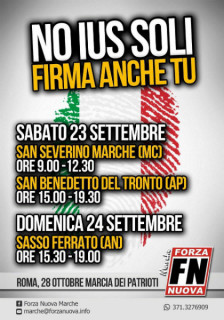 Forza Nuova Marche: lanciata la raccolta firme contro lo IUS SOLI