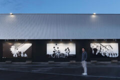 Le gigantografie di Lorenzo Cicconi Massi sulla facciata del Palasport di Corinaldo