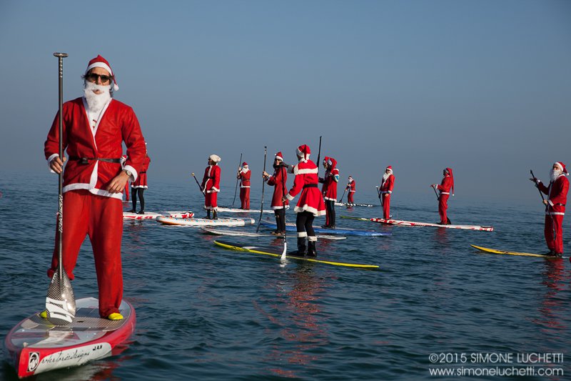 A Senigallia Babbo Natale arriva in SUP dal fiume Misa