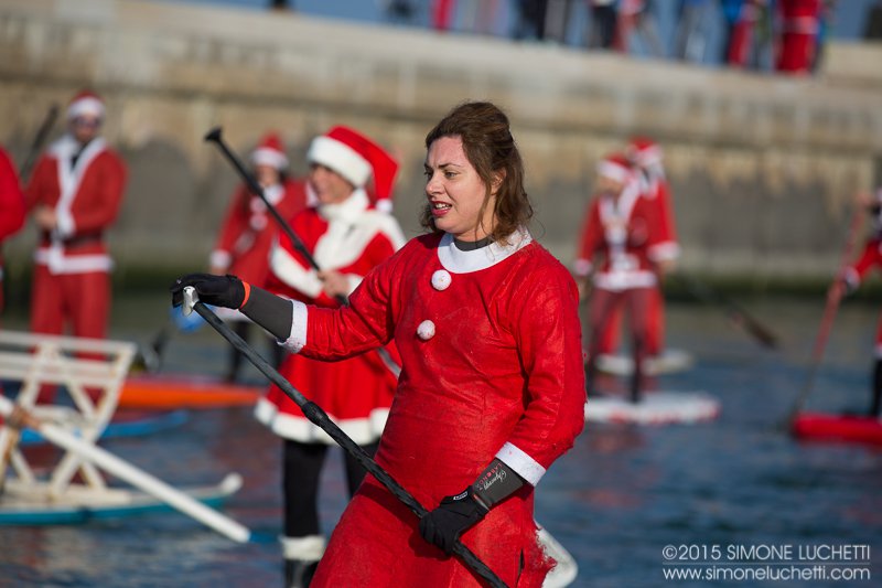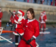 I partecipanti alla sfilata dei Babbi Natale in SUP