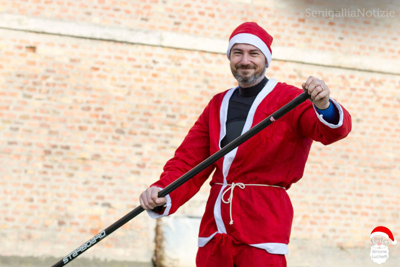Il fiume Misa di Senigallia si riempie di Babbi Natale