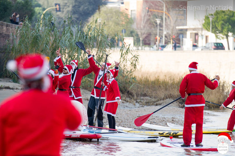 Il fiume Misa di Senigallia si riempie di Babbi Natale