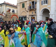 Sfila il Carnevale 2016 in centro a Senigallia: carri e gruppi mascherati nel pomeriggio di Martedì Grasso tra corso due Giugno, portici Ercolani, Foro Annonario e piazza del Duca. Foto di Luca Ceccacci